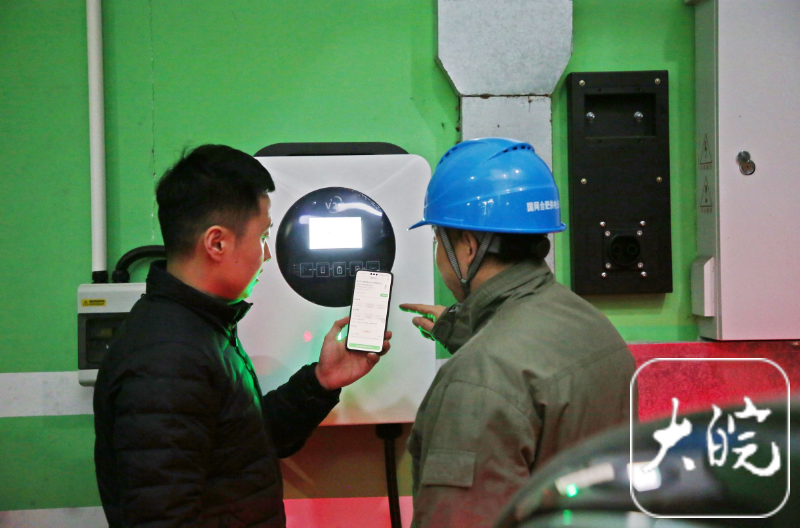 当日15时许,在葛洲坝玖珑府小区地下车库内,国网合肥供电公司蜀山分公司经开管事班职责主谈主员王刚与车主夏祺,共同对一台簇新的车网互动(V2G)双向放电桩开展送电前的临了查验。查验罢了、完成充电桩送电、阐述车辆与充电桩衔尾无误后,夏祺在手机APP界面上按下“我要放电”教唆。与此同期,充电桩教唆灯发生变化,手机屏幕上的数字开动及时跳跃,新能源汽车电板中储存的电量开动雄厚运送至电网。