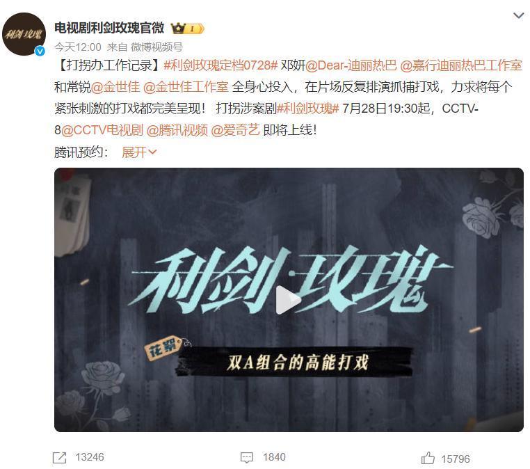 除了官宣《扫毒风暴》定档外,还有一部剧也官宣定档,这部剧即是迪丽热巴主演的《利剑玫瑰》,将于7月28日播出,也即是说,《利剑玫瑰》将接档《扫毒风暴》。