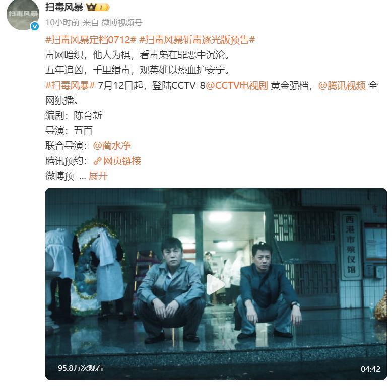 这部剧行将迎来大结局,又有一部剧官宣定档,将于7月12日播出,这部剧即是《扫毒风暴》,这部剧发生在1995年,私运商卢少骅整夜间家徒四壁,并因此往复到非凡渠说念,发现能给我方带来浩瀚利润的时间,他成为又名“毒师”,而缉毒警员林强峰摸到踪影之后,他签订投身到扫毒风暴中,最终将卢少骅抓捕归案。
