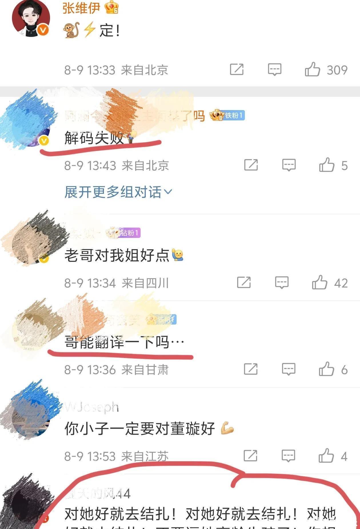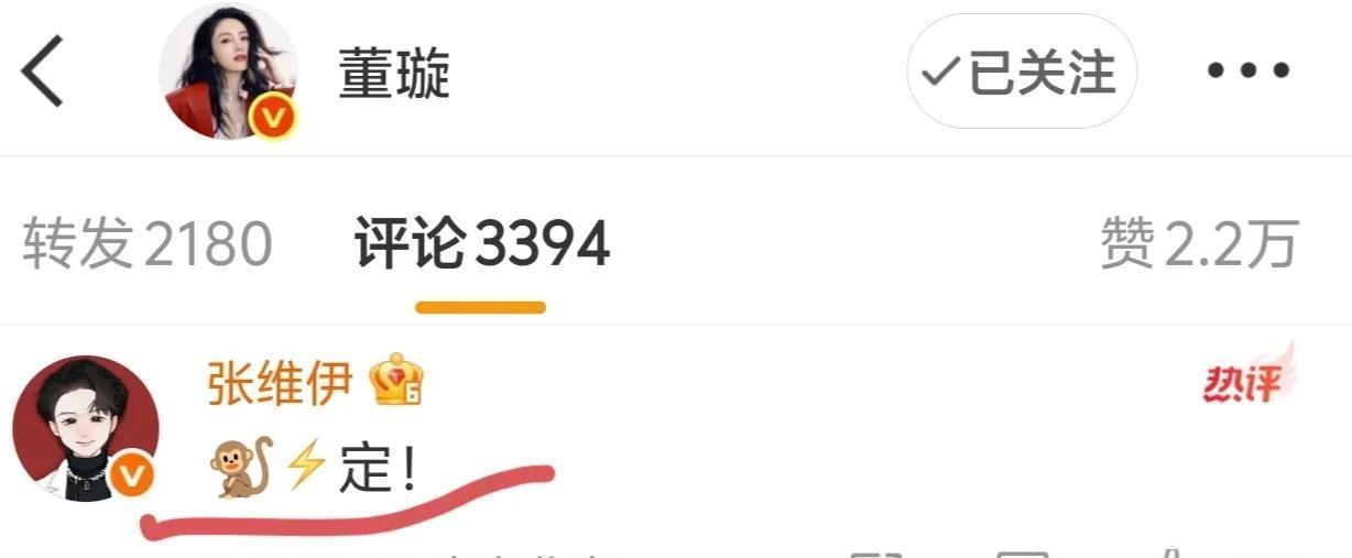 相通也艾特了董璇,然后又去新婚夫人评述区留言:山公闪电的图片,再加上一个笔墨“定”。