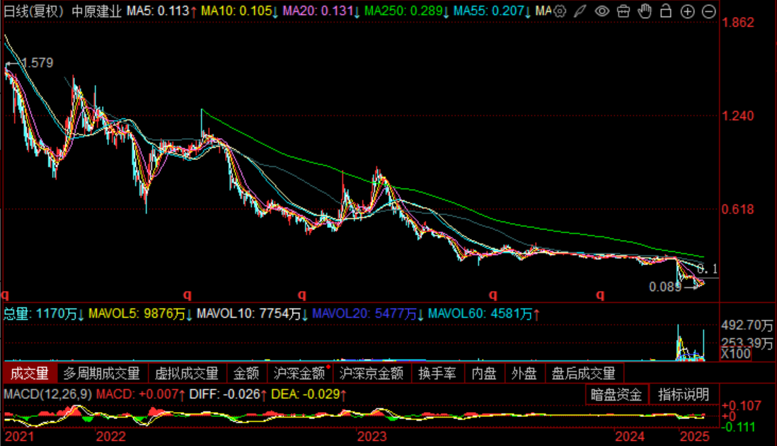 跟着光环褪去,成本阛阓关于华夏建业的爱重度大幅下跌。1月27日收盘,华夏建业股价报0.111港元/股,总市值4.29亿港元,较巅峰时(2021年6月3日)跌幅超95%。